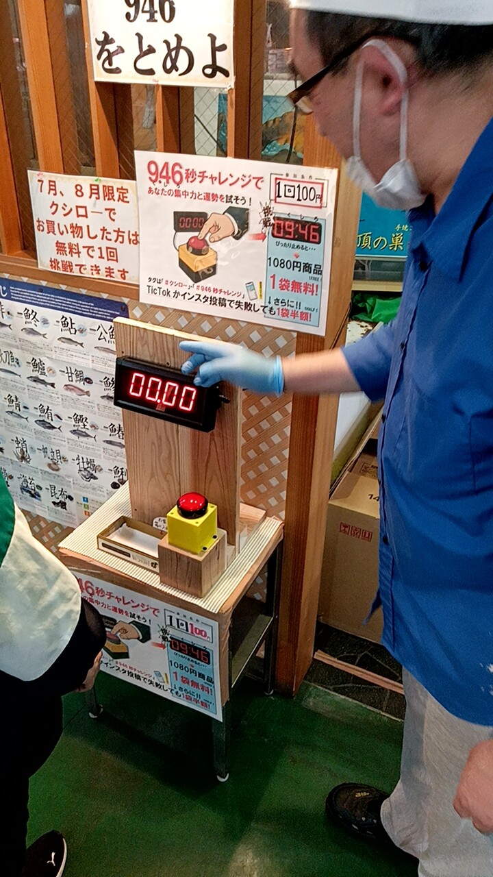9秒46で止めたら賞品が出るようですが、